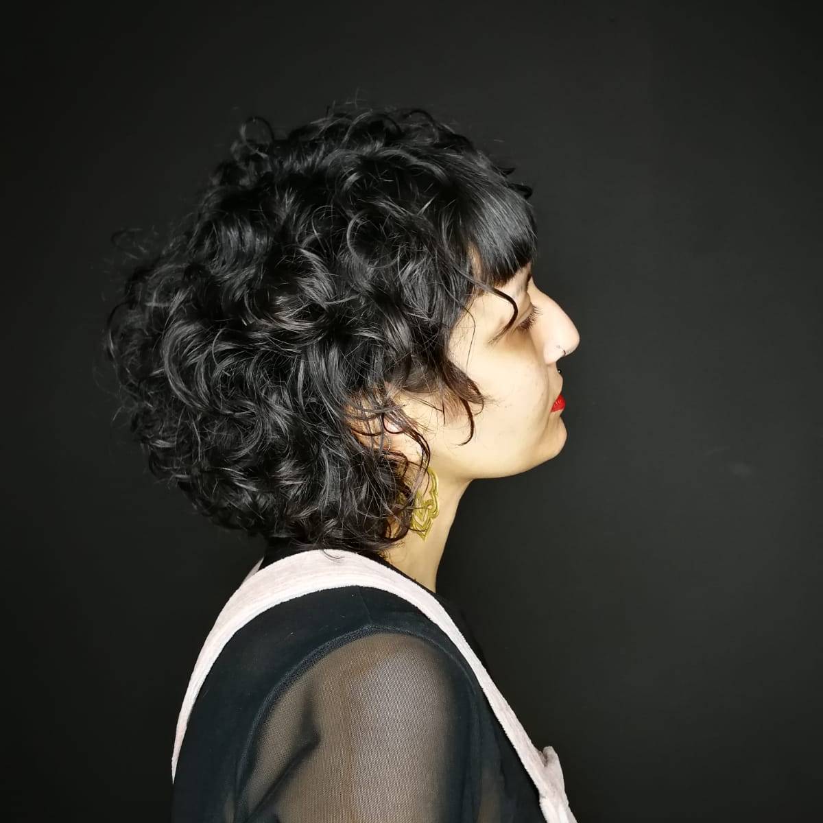 Ici le travail consiste à mettre la qualité de la chevelure en avant avec une coupe qui permet de bien aérer la boucle pour un résultat plus moderne.